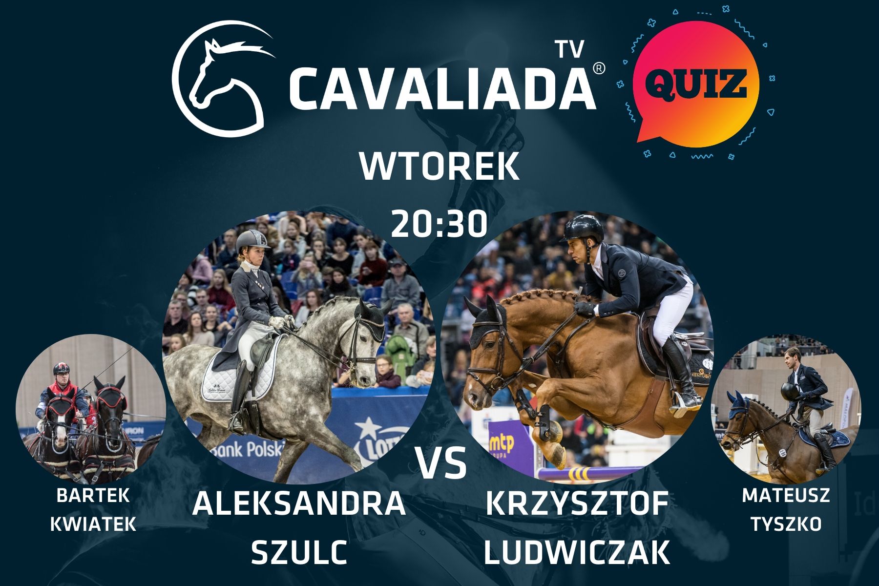 Oglądaj na żywo zmagania topowych polskich zawodników w edukacyjno-rozrywkowym QUIZie „Wszechstronny Konkurs Końskiej Wiedzy”.