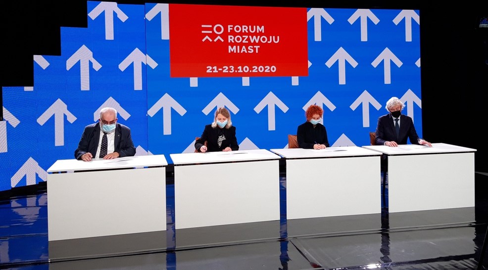 List intencyjny w sprawie organizacji tegorocznego Forum Rozwoju Miast podpisano w środę, 7 października na terenie Międzynarodowych Targów Poznańskich. Deklarację współpracy złożyli: Iwona Matuszczak-Szulc - dyrektorka Wydziału Rozwoju Miasta i Współpracy Międzynarodowej Urzędu Miasta, Joanna Kucharska - dyrektor grupy produktów Grupy MTP, Grzegorz Michalski - prezes Zarządu Wielkopolskiego Centrum Wspierania Inwestycji sp. z o.o. oraz Andrzej Porawski - dyrektor Biura Związku Miast Polskich.